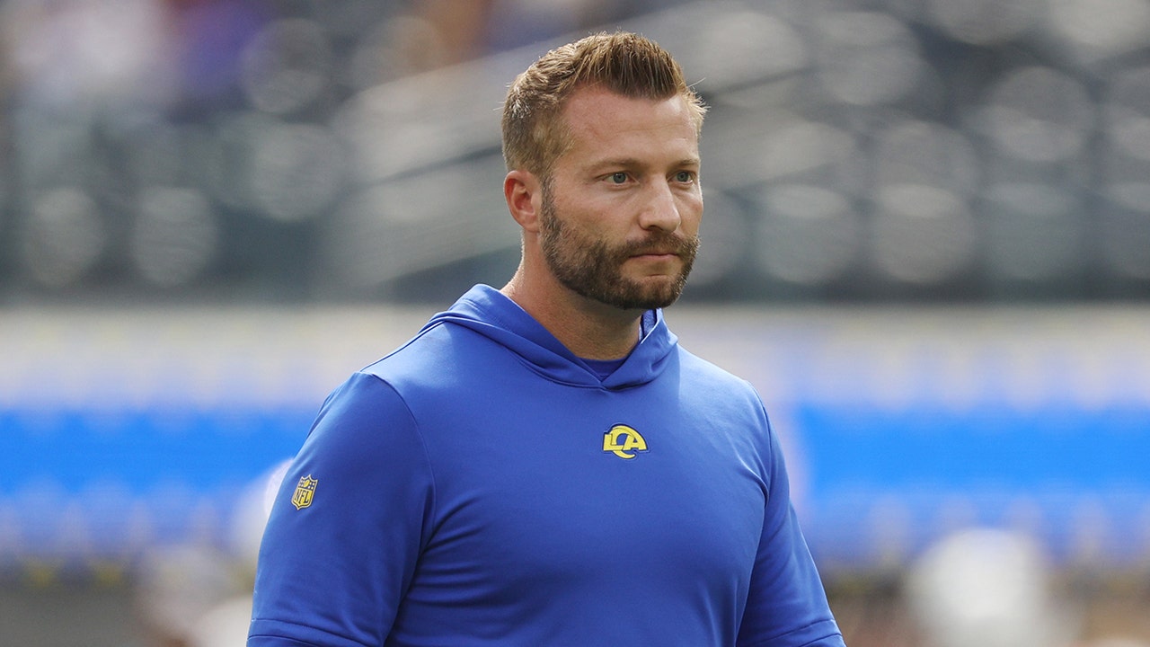 Los Angeles Rams head coach Sean McVay walks the field before the game against the Arizona Cardinals at SoFi Stadium on October 15, 2023, in Inglewood, California. (Harry How/Getty Images)