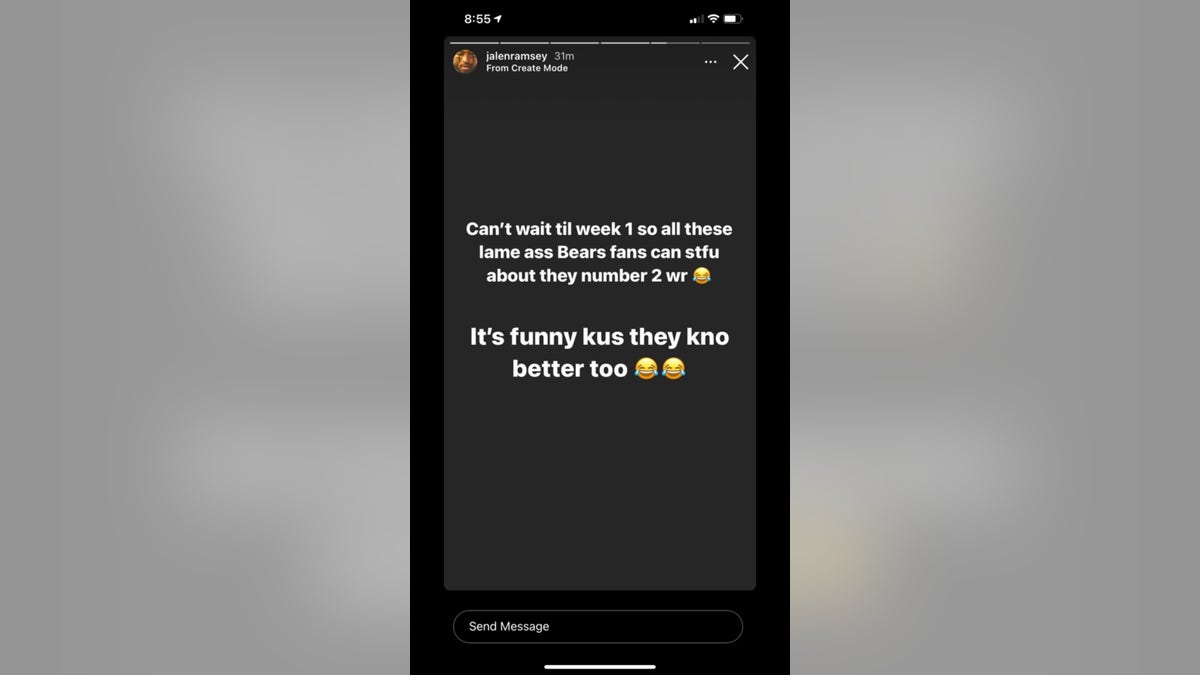 "Can’t wait til week 1 so all these lame a-- Bears fans can stfu about they number 2 wr," Ramsey wrote. "It’s funny kus they kno better too."