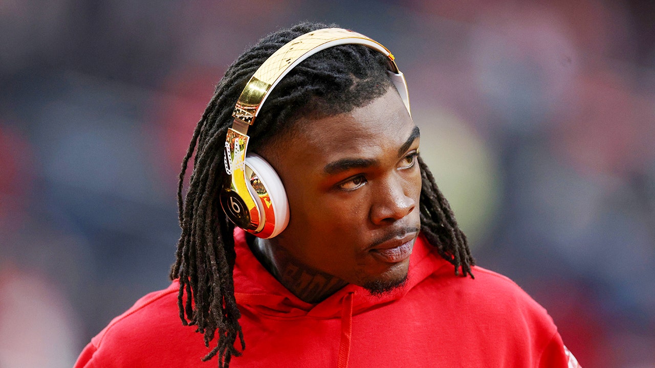 Rashee Rice #4 of the Kansas City Chiefs warms up before Super Bowl LVIII against the Kansas City Chiefs at Allegiant Stadium on February 11, 2024 in Las Vegas, Nevada. (Jamie Squire/Getty Images)