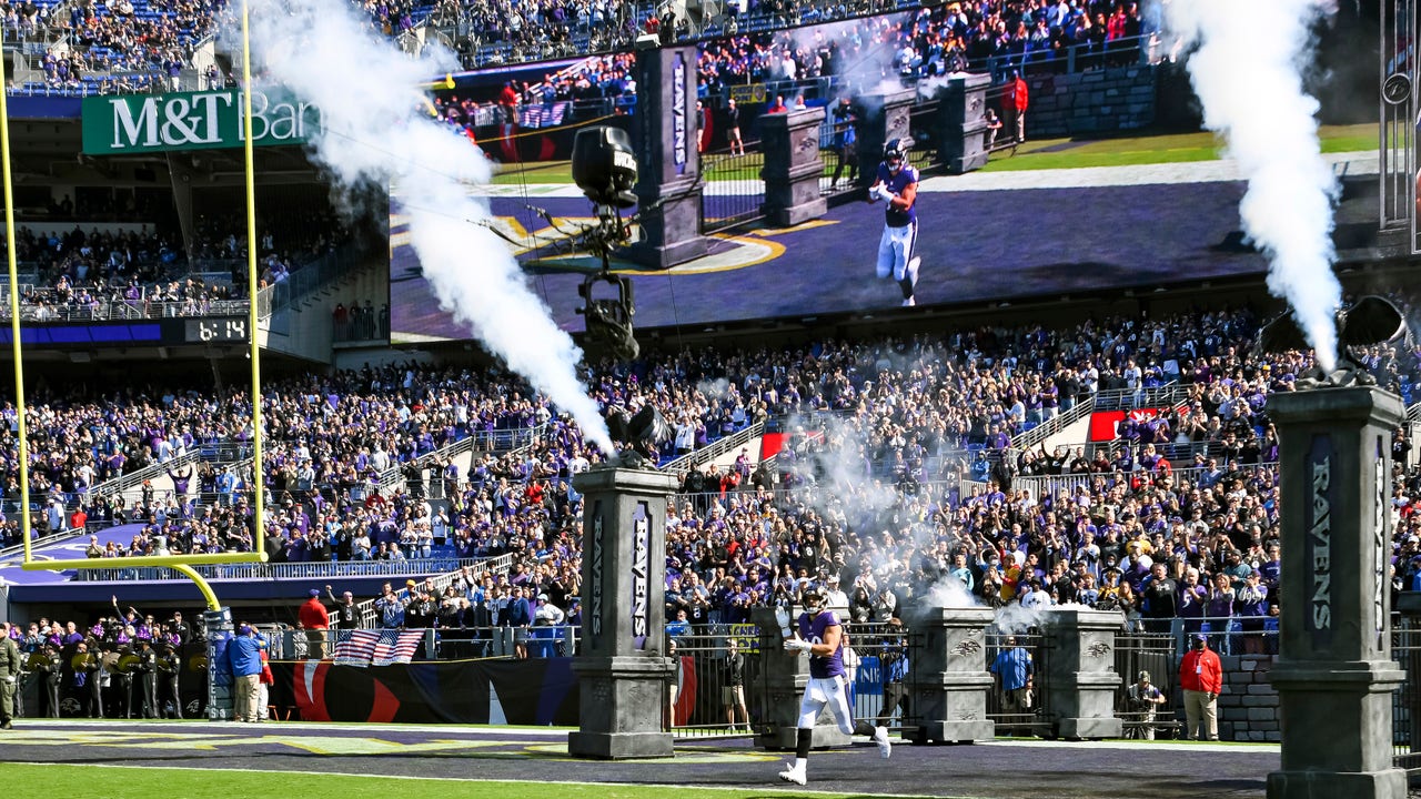 Baltimore Ravens tight end Mark Andrews (89) is introduced to the crowd before a game against the Los Angeles Chargers Oct. 17, 2021 at M and T Bank Stadium in Baltimore. (Mark Goldman/Icon Sportswire via Getty Images)