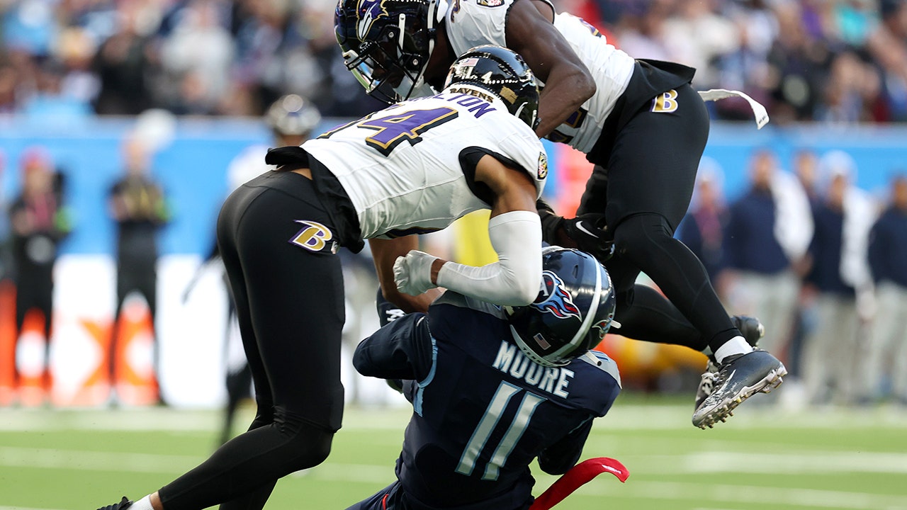 Baltimore Ravens safety Kyle Hamilton was ejected from Sunday’s game against the Tennessee Titans in London after he made helmet-to-helmet contact with receiver Chris Moore.