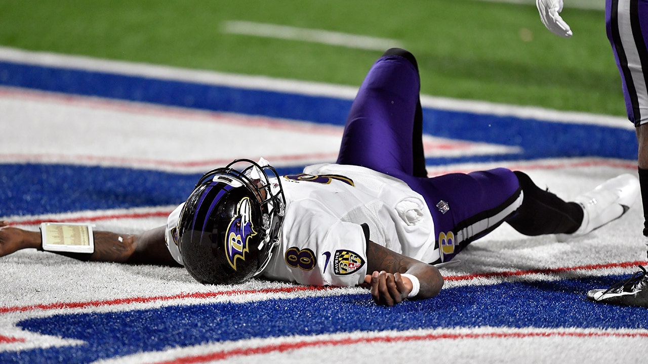 Quarterback Lamar Jackson injured his head during the Baltimore Ravens’ divisional-round NFL playoff game against the Buffalo Bills on Saturday night and did not return.