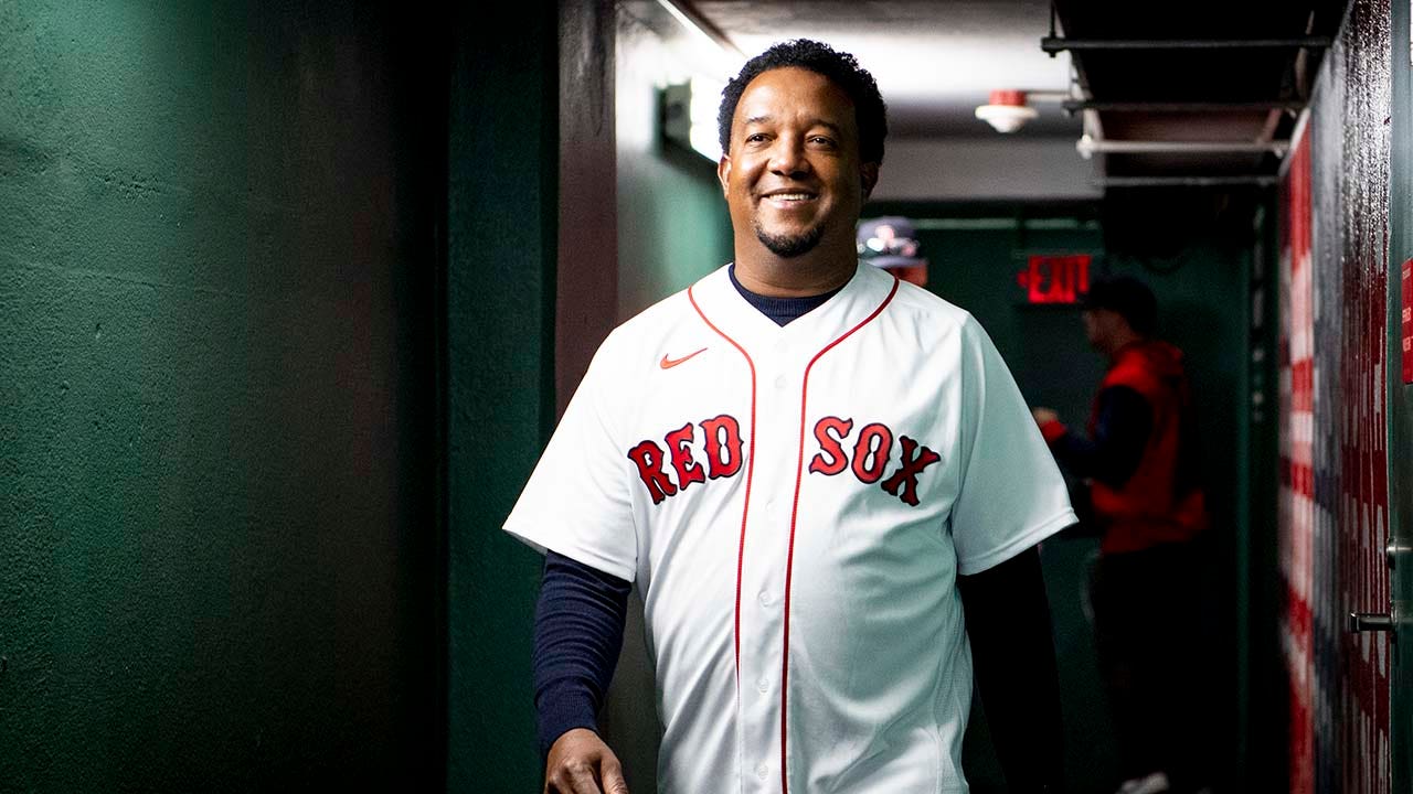 Former Boston Red Sox pitcher Pedro Martinez walks through the batting tunnel before the Opening Day game between the Minnesota Twins and the Boston Red Sox on April, 15, 2022 at Fenway Park in Boston, Massachusetts. All players are wearing the number 42 in honor of Jackie Robinson Day. (Maddie Malhotra/Boston Red Sox/Getty Images)