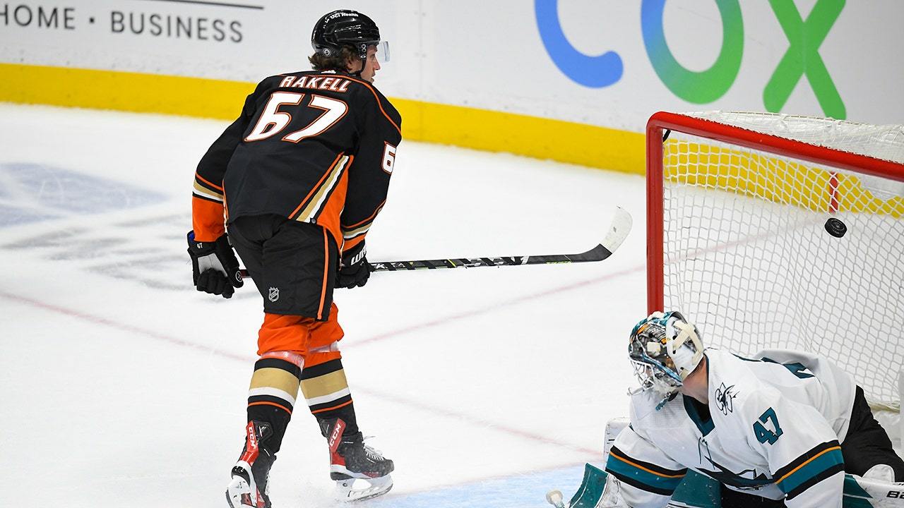 Trevor Zegras converted in the first round of the shootout, and Anaheim goalie Anthony Stolarz turned away Logan Couture and Tomas Hertl. That put it in the hands of Rakell, who went top shelf on James Reimer to give the Ducks their second straight win.