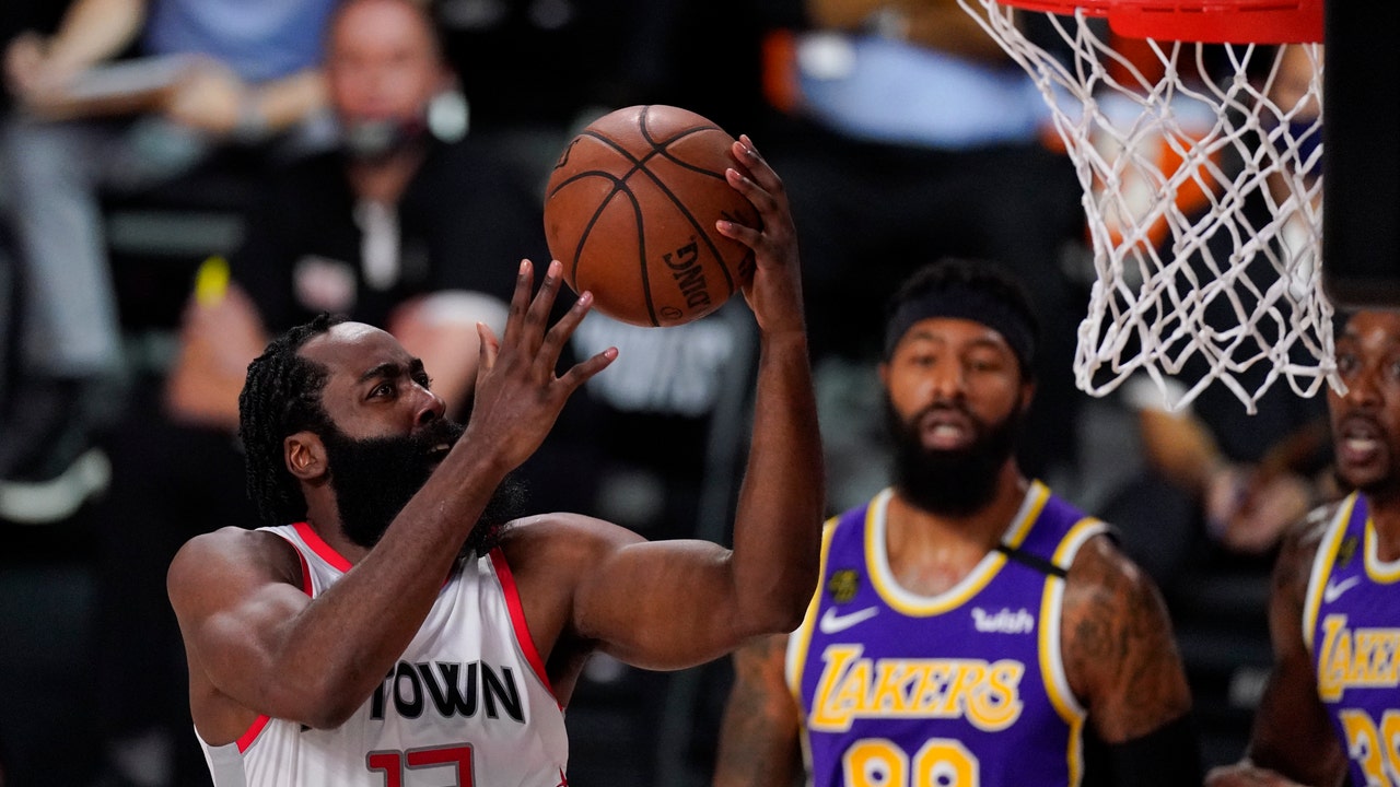 James Harden scored 36 points and the Rockets ran away from the Lakers 112-97 on Friday night, the second straight round the No. 1 seed in the Western Conference lost its opener.