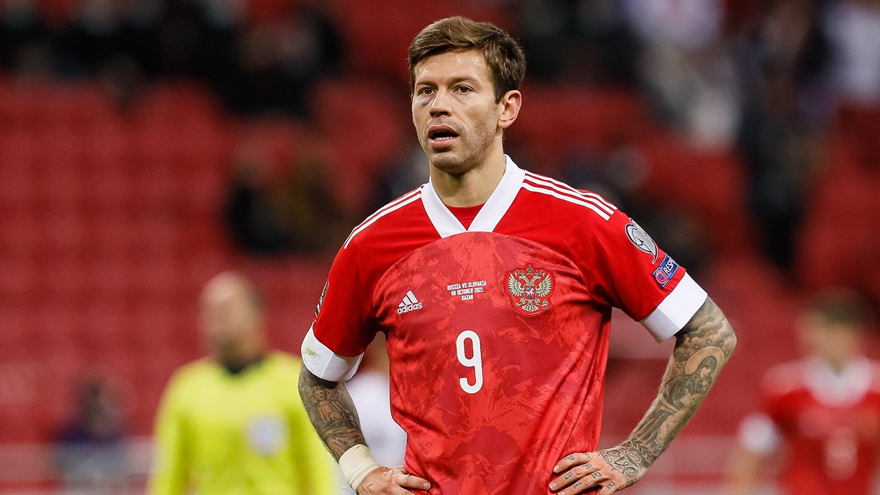 Russia's Fedor Smolov looks at the players during the World Cup 2022 group H qualifying soccer match between Cyprus and Russia at GSP stadium in Nicosia, Cyprus, Saturday, Sept. 4, 2021 (Danil Shamkin/NurPhoto via Getty Images)