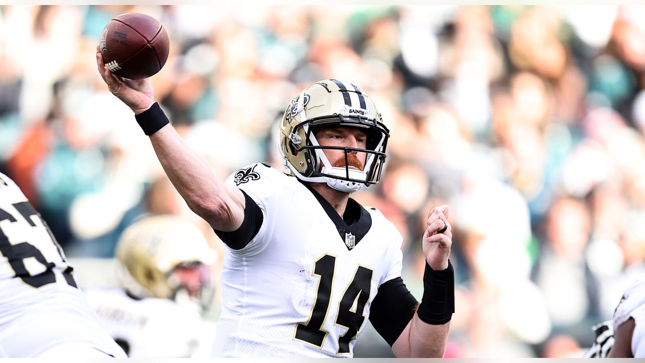 Andy Dalton #14 of the New Orleans Saints passes against the Philadelphia Eagles during the third quarter at Lincoln Financial Field on January 01, 2023 in Philadelphia, Pennsylvania. (Dustin Satloff/Getty Images)