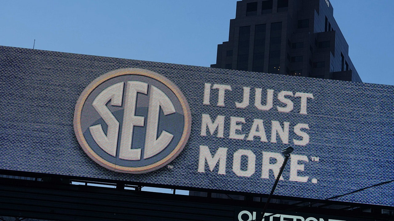 An SEC logo billboard prior to the NCAA Women's Final Four. (Kirby Lee/USA Today Sports)