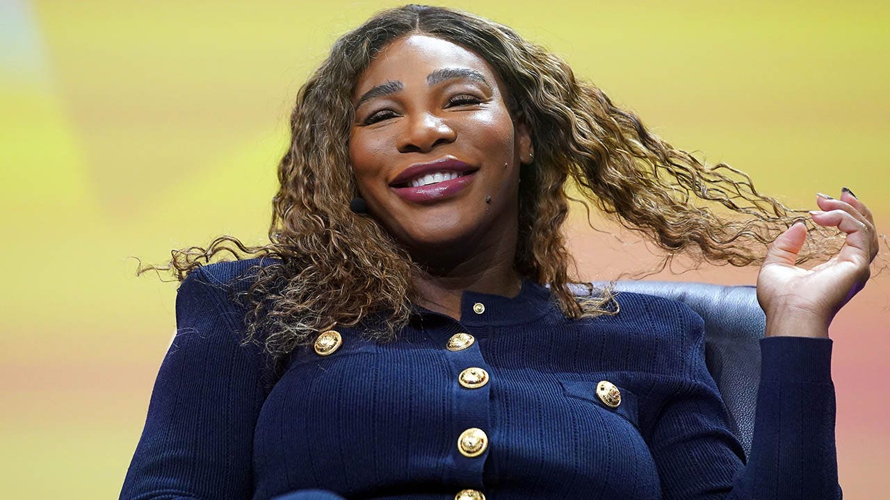 Serena Williams, former tennis player, sits on stage at the OMR digital trade show in the exhibition halls. (Marcus Brandt/picture alliance via Getty Images)