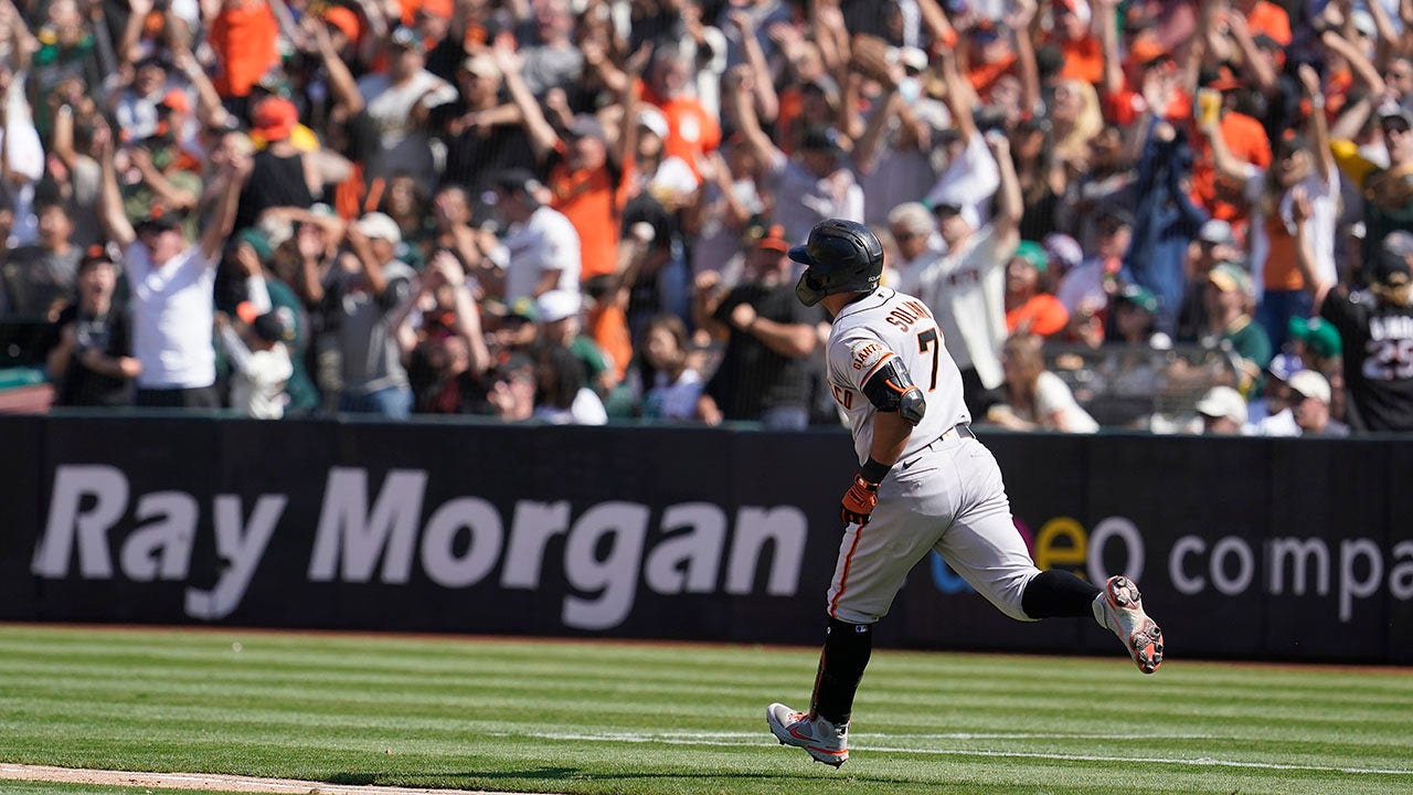 Pinch-hitter Donovan Solano delivered a go-ahead two-run homer on the first pitch he saw from A.J. Puk with two outs in the eighth inning, and the San Francisco Giants rallied past the Oakland Athletics for a second straight day with a 2-1 win Sunday.