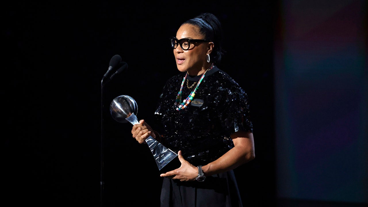 Dawn Staley accepts the Jimmy V Award for Perseverance onstage during the 2024 ESPY Awards at Dolby Theatre July 11, 2024, in Hollywood, Calif. (Frazer Harrison/Getty Images)