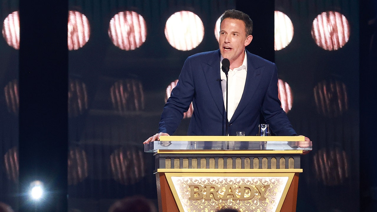 Ben Afflecks speak onstage during G.R.O.A.T The Greatest Roast Of All Time: Tom Brady for the Netflix is a Joke Festival at The Kia Forum on May 05, 2024 in Inglewood, California. (Matt Winkelmeyer/Getty Images for Netflix)
