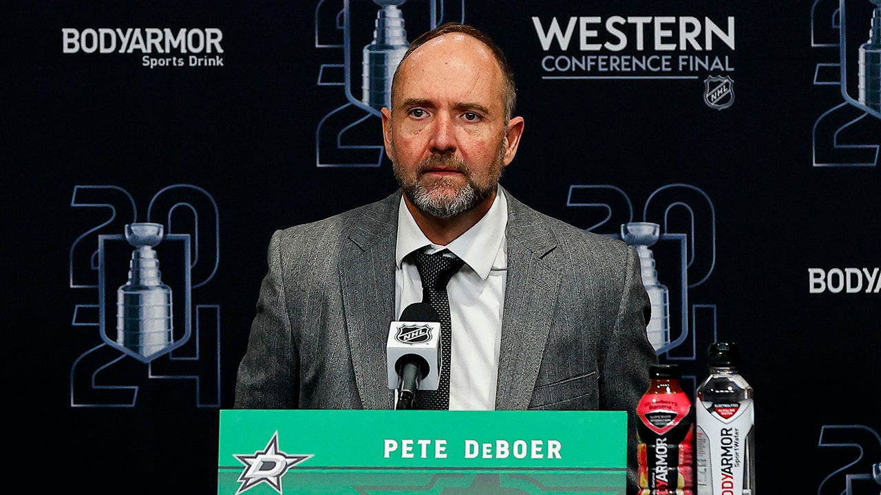 Dallas Stars head coach Pete DeBoer addresses the media after Game 5 of the Western Conference finals against the Edmonton Oilers May 31, 2024, at American Airlines Center in Dallas. (Matthew Pearce/Icon Sportswire via Getty Images)