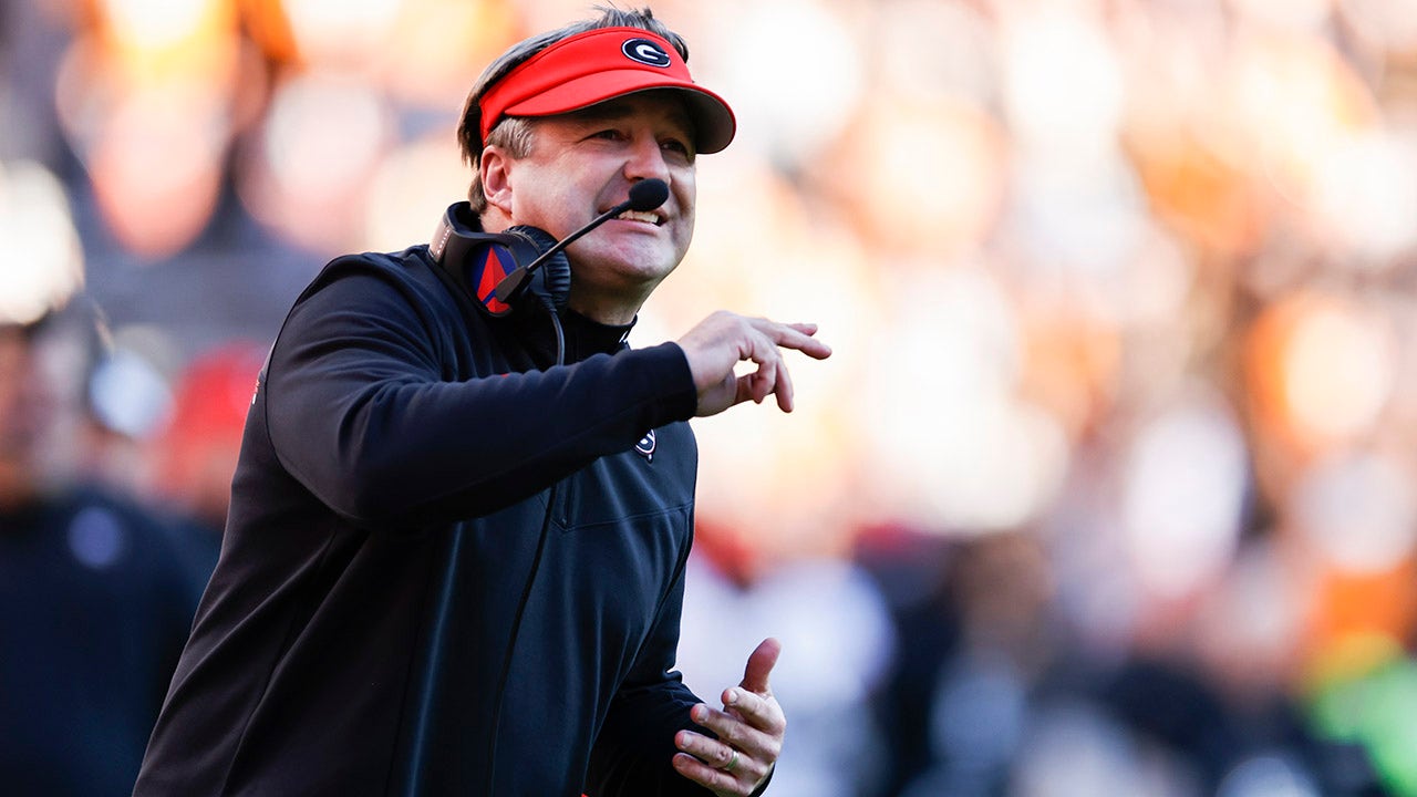 Georgia running back James Cook (4) points to fans as he scores a touchdown during the first half of an NCAA college football game against Tennessee, Saturday, Nov. 13, 2021, in Knoxville, Tenn. (AP Photo/Wade Payne)