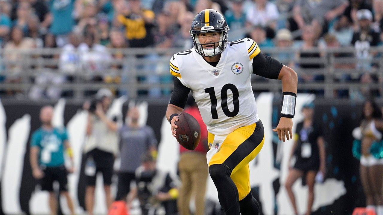 FILE - Pittsburgh Steelers quarterback Mitch Trubisky (10) scrambles for yardage during the first half of a preseason NFL football game against the Jacksonville Jaguars, Saturday, Aug. 20, 2022, in Jacksonville, Fla. Trubisky is battling with fellow Steeler quarterbacks Kenny Pickett for the right to replace longtime starting quarterback Ben Roethlisberger, who retired in January. (AP Photo/Phelan M. Ebenhack, File)