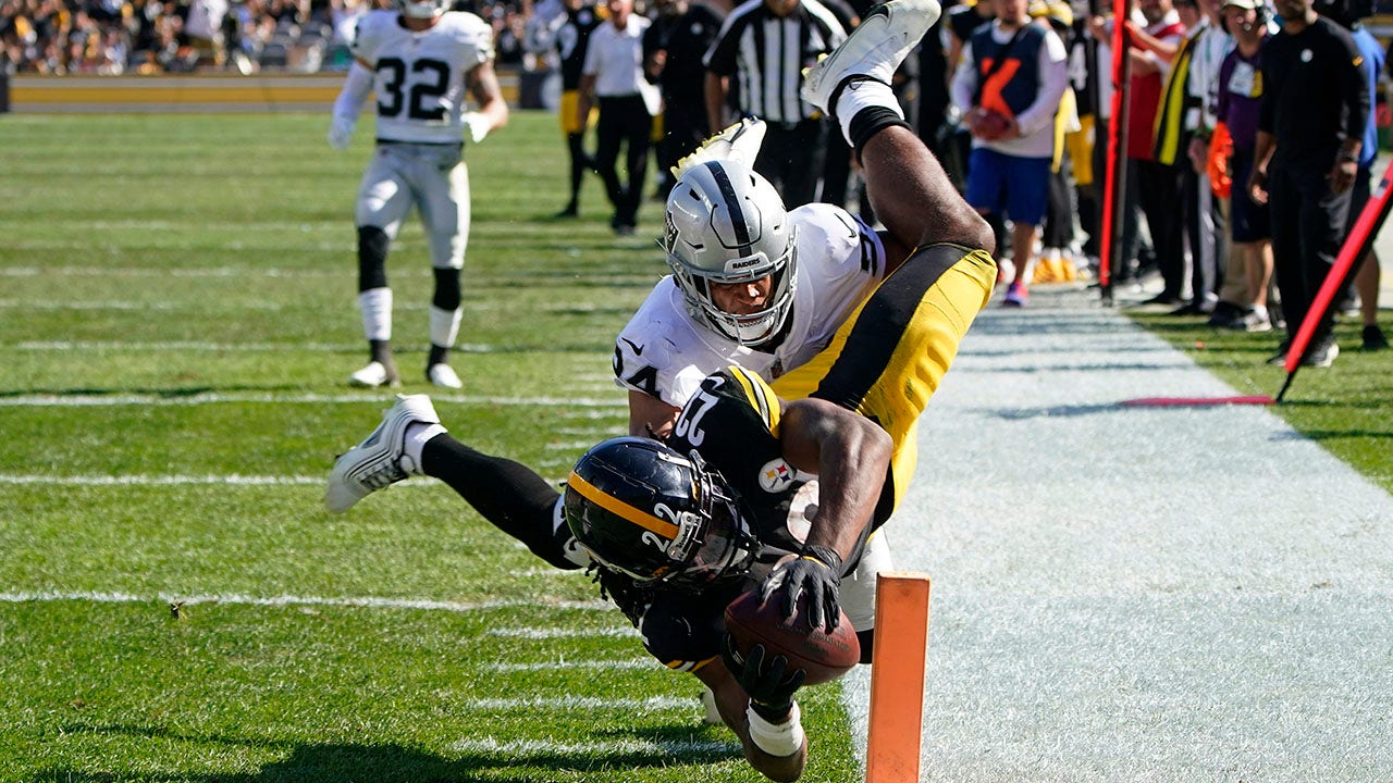 STEELERS' NAJEE HARRIS DELIVERS BRUTAL STIFF ARM TO RAIDERS DEFENDER