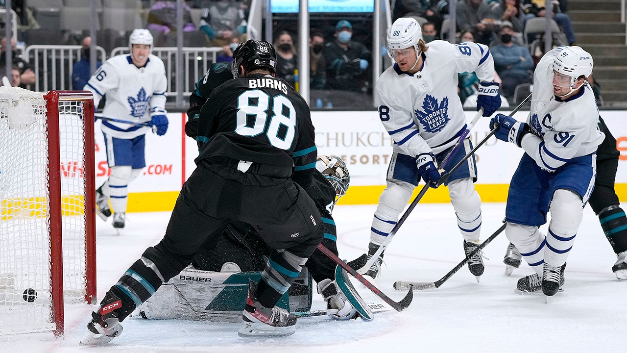 The Sharks got a first-period goal from Nick Bonino, but their defense couldn’t hold up against constant pressure from the Leafs. James Reimer (13 saves on 17 shots), who has provided a spark in the net recently for San Jose, was pulled in the second period in favor of Adin Hill (16 saves).
