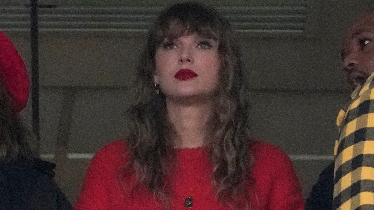 Taylor Swift watches the action during the first half of the AFC Championship Game between the Kansas City Chiefs and Ravens in Baltimore on Jan. 28, 2024. (AP Photo/Nick Wass)