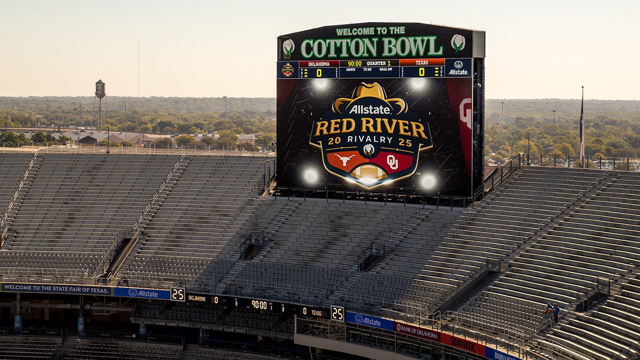 The end zone scoreboard before a game between the Oklahoma Sooners and the Texas Longhorns Oct. 11, 2025, in Dallas Texas. (William Purnell/Icon Sportswire via Getty Images)