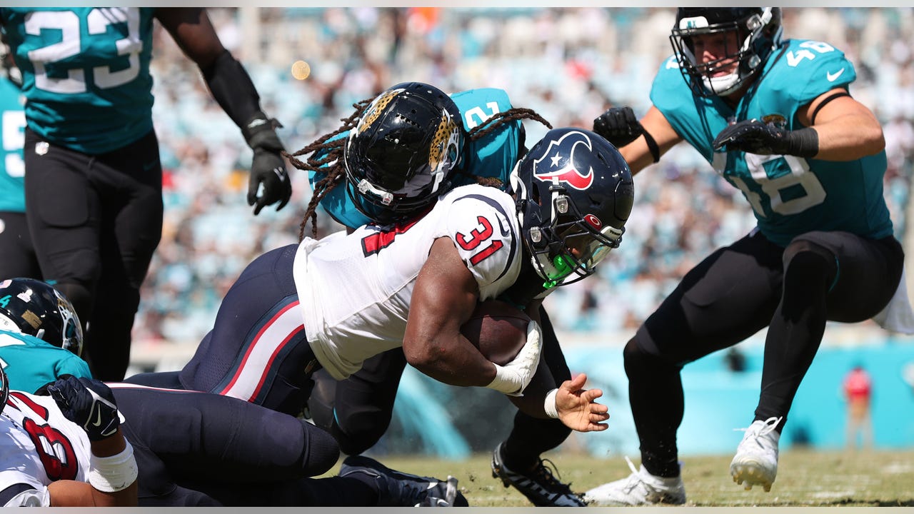 Jaguars LG Ben Bartch and LB K’Lavon Chaisson left the game with knee injuries. … Both teams played without one of their best defensive linemen: Houston was without Jon Greenard; Jacksonville was without Foley Fatukasi.