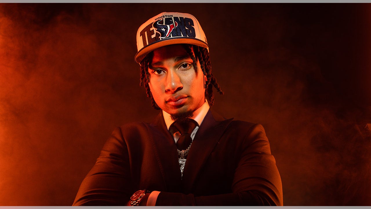 C.J. Stroud poses after being selected second overall by the Houston Texans during the first round of the 2023 NFL Draft at Union Station on April 27, 2023, in Kansas City. (Todd Rosenberg/Getty Images)