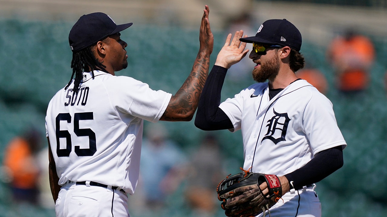 Joe Jiménez (1-0) pitched a 1-2-3 seventh for his first win since last Aug. 26. Alex Lange threw the eighth and Gregory Soto pitched a perfect ninth to finish the six-hitter.