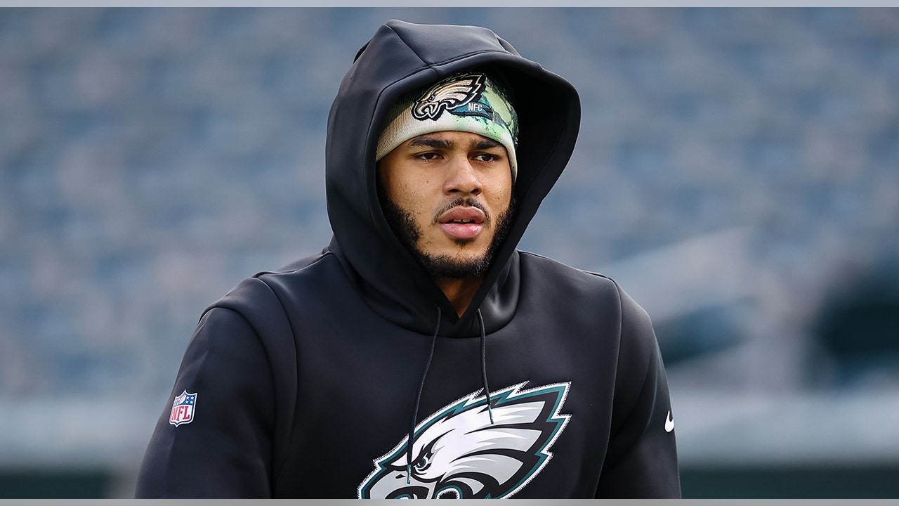 T.J. Edwards of the Eagles warms up before the Tennessee Titans game at Lincoln Financial Field on Dec. 4, 2022, in Philadelphia. (Scott Taetsch/Getty Images)