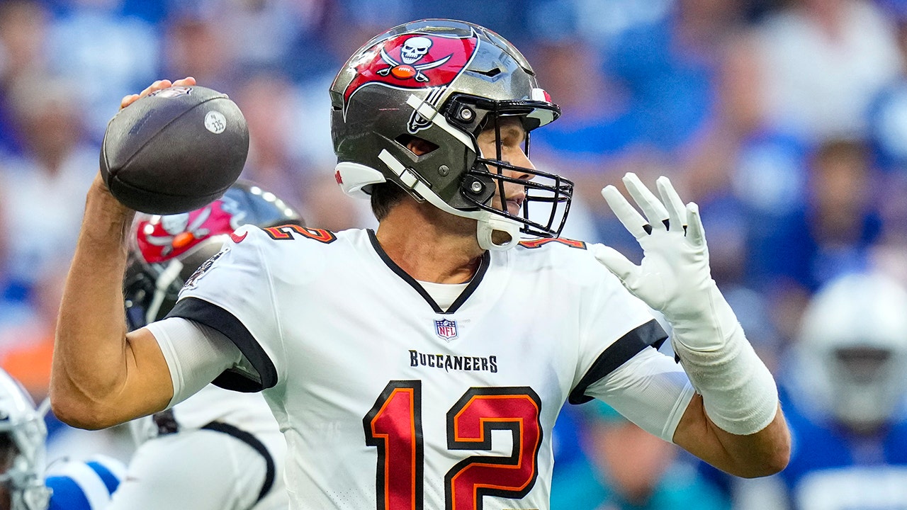 Tom Brady throws against the Colts during a preseason game in Indianapolis on Aug. 27, 2022. (AP Photo/AJ Mast)