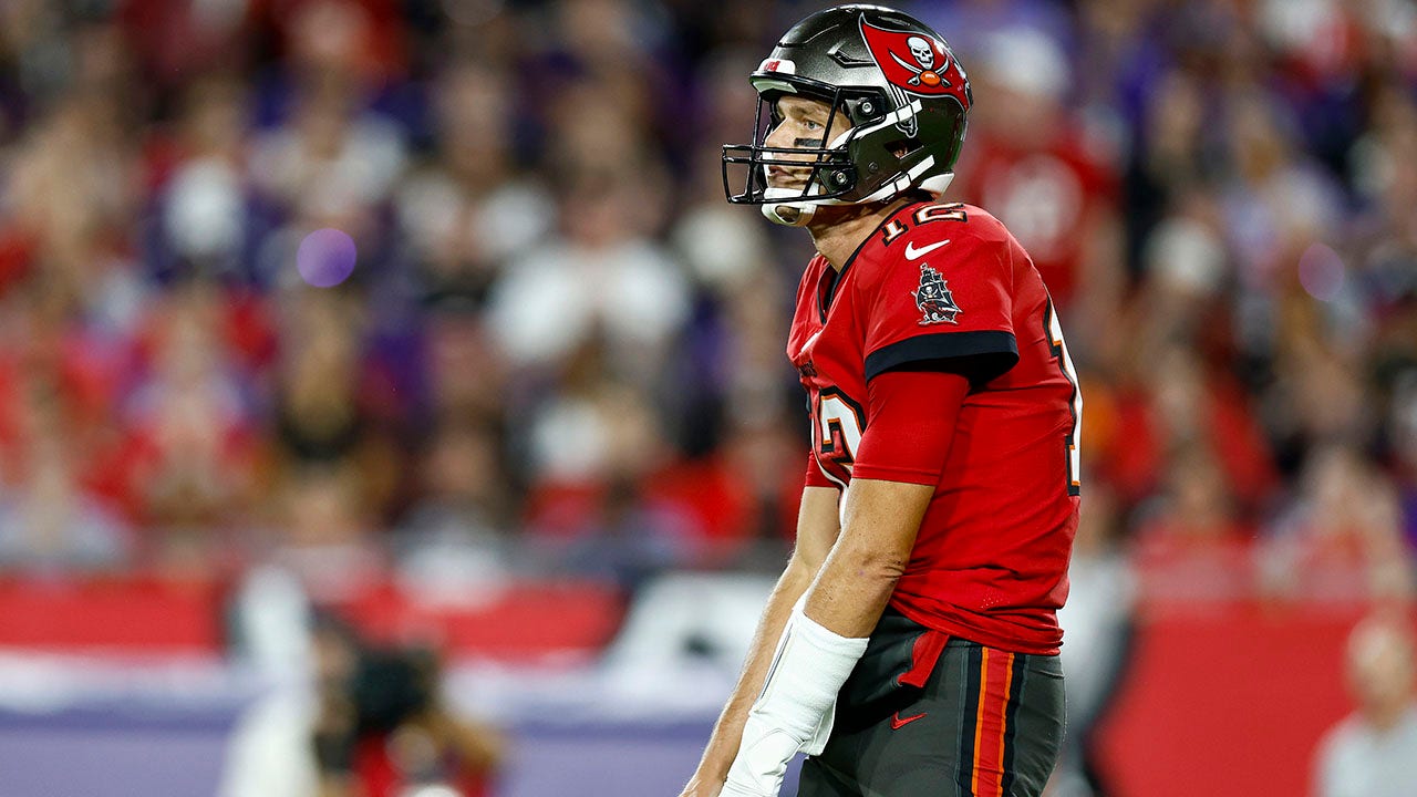 Tom Brady #12 of the Tampa Bay Buccaneers looks on during pregame warm-ups prior to a game against the Baltimore Ravens at Raymond James Stadium on October 27, 2022 in Tampa, Florida. (Mike Ehrmann/Getty Images)
