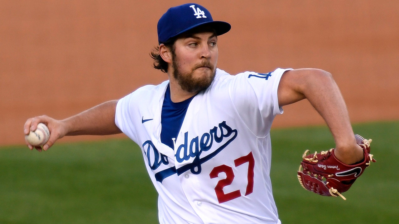 Los Angeles Dodgers pitcher Trevor Bauer throws during the game against the San Francisco Giants at Oracle Park in San Francisco on May 21, 2021. (Brian Rothmuller/Icon Sportswire via Getty Images)