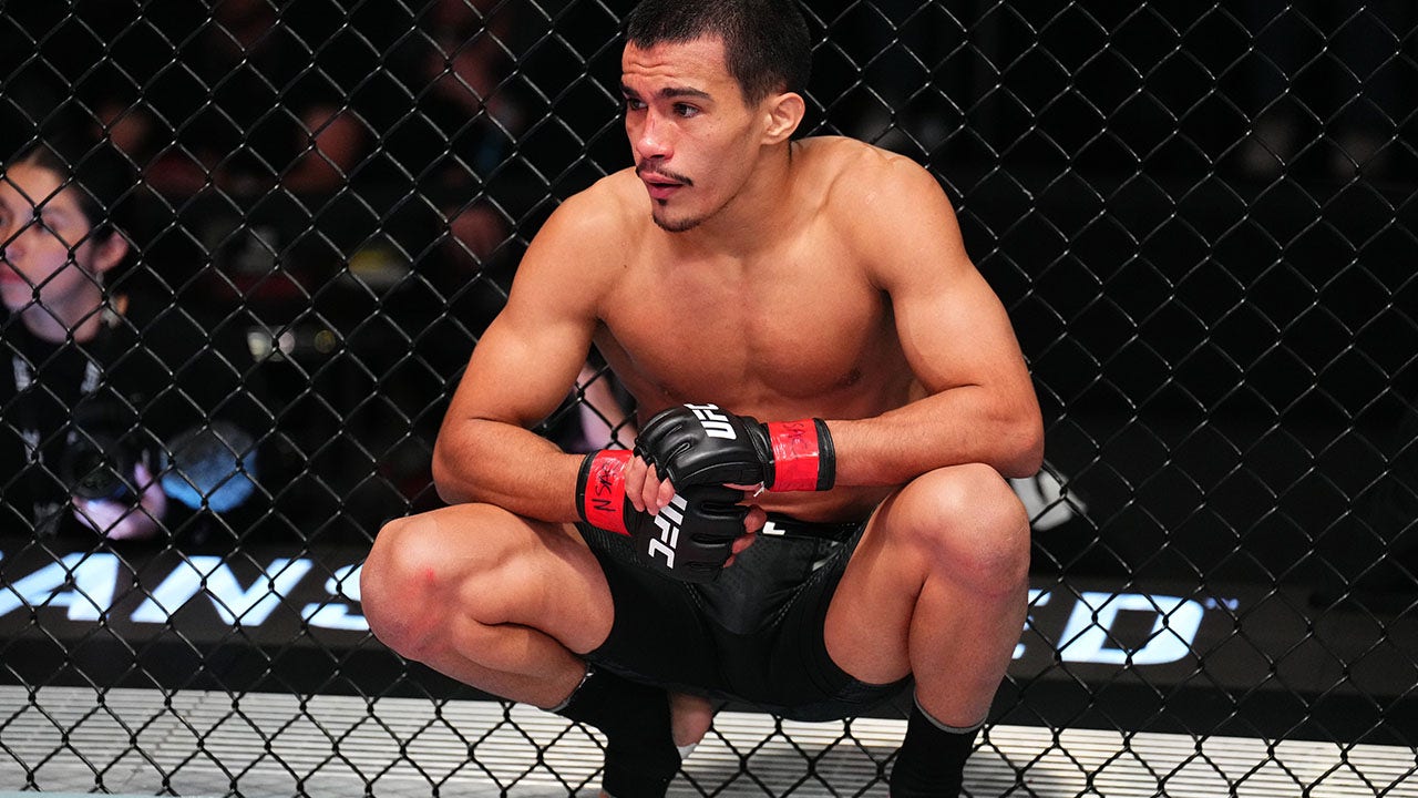 Igor Severino of Brazil reacts during a flyweight fight against Andre Lima of Brazil during the UFC Fight Night event at UFC APEX on March 23, 2024, in Las Vegas, Nevada. (Chris Unger/Zuffa LLC via Getty Images)