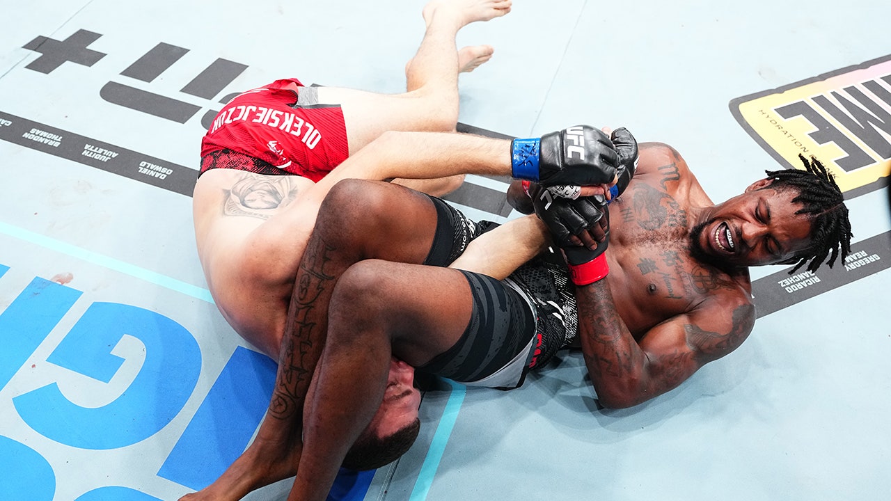 Kevin Holland puts Michal Oleksiejczuk in an armbar during their UFC 302 event at Prudential Center on June 1, 2024, in Newark, New Jersey. (Jeff Bottari/Zuffa LLC via Getty Images)