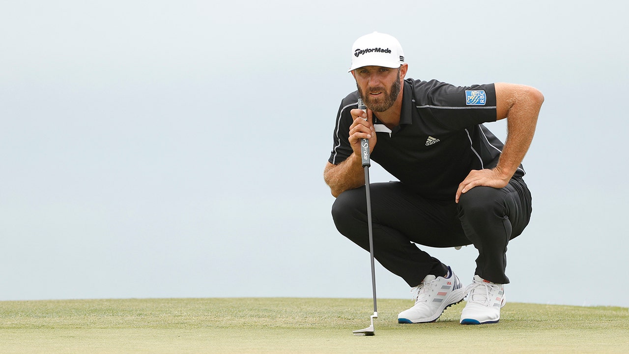 Dustin Johnson lines up his putt during the U.S. Open at Torrey Pines Golf Course on June 20, 2021, in San Diego, (Ezra Shaw/Getty Images)