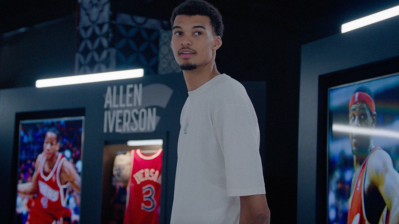 As Wembanyama began looking through the rookie cards of Allen Iverson, Shaquille O'Neal and Kevin Durant among others, the exhibit started to come to life. It began with Jason Kidd's voice being heard from his Dallas Mavericks case, where the mouth started to move on the screen.
