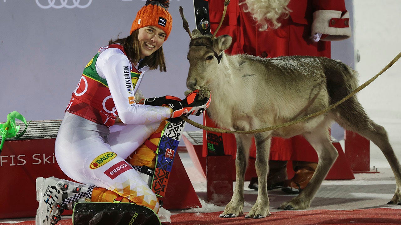 Vlhova received her fourth reindeer, a prize for the winner of the race, and said she would name it Michal.