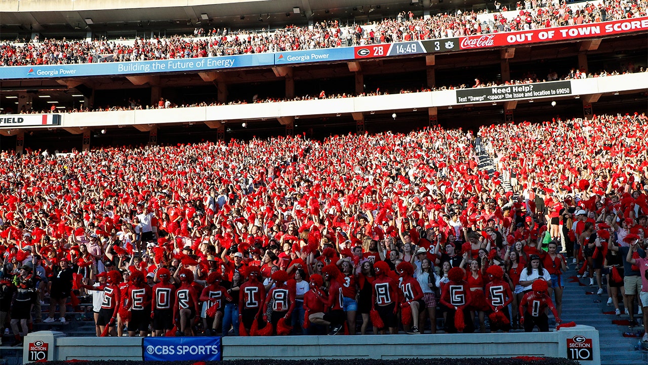 This view shows fans during the game between the Auburn Tigers and the Georgia Bulldogs on October 8, 2022, at Sanford Stadium in Athens, Georgia. (Brandon Sloter/Icon Sportswire via Getty Images)