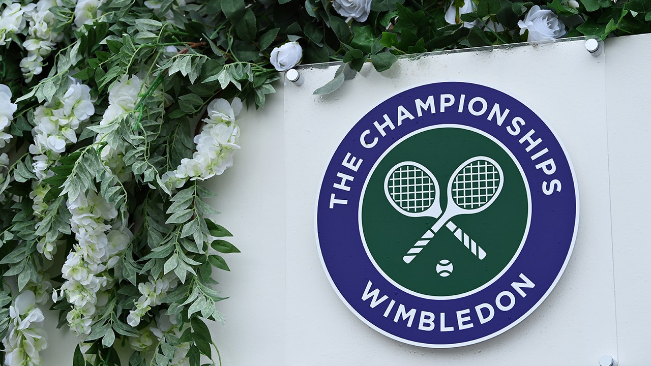 A general view of a Wimbledon Championships logo seen in the grounds during Day One of The Championships - Wimbledon 2021 at All England Lawn Tennis and Croquet Club on June 28, 2021 in London. (Photo by Mike Hewitt/Getty Images)
