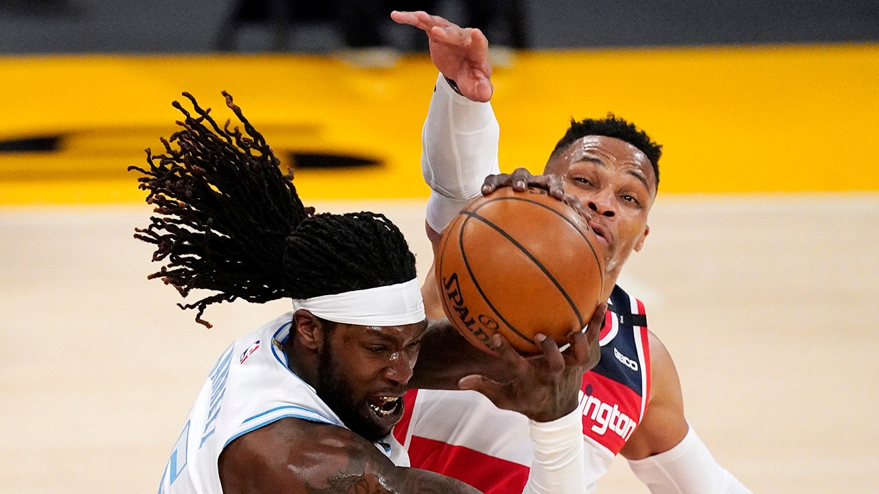 Russell Westbrook scored six of his 32 points in overtime for the Wizards, who rallied from a 17-point deficit in the second half. Washington then took advantage of a missed free throw by LeBron James late in regulation and went on to its first win over the Lakers at Staples Center since March 2017.
