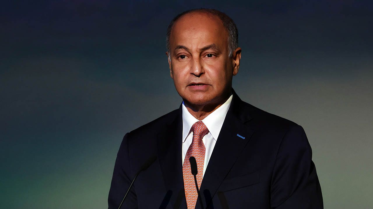 Captain Husain Al-Musallam, World Aquatics President speaks during the Opening Ceremony for the Fukuoka 2023 World Aquatics Championships at Boat Race Fukuoka on July 14, 2023 in Fukuoka, Japan. (Ian MacNicol/Getty Images)