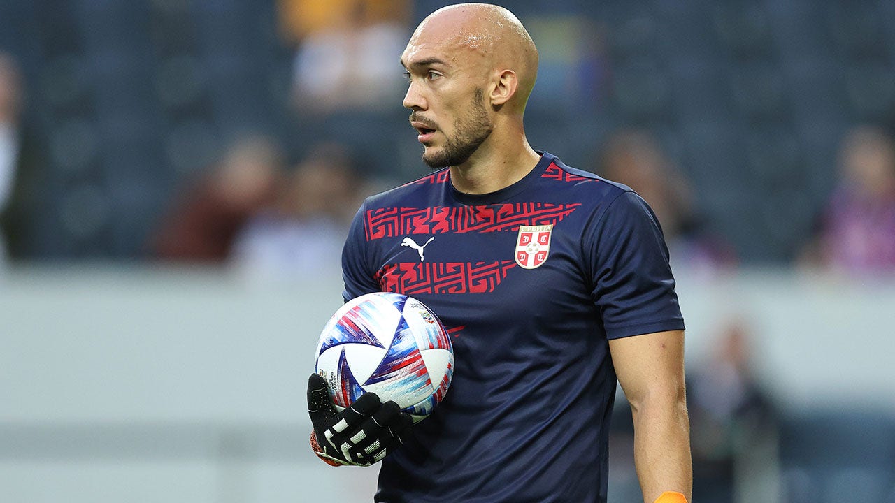 Marko Dmitrovic of Serbia is shown during the UEFA Nations League match against Sweden at Friends Arena on June 9, 2022, in Solna, Sweden. (James Williamson - AMA/Getty Images)