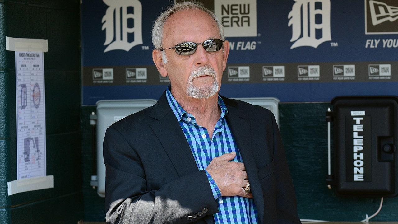 Former Detroit Tigers manager Jim Leyland looks on during the national anthem prior to the game against the Minnesota Twins at Comerica Park on May 10, 2014, in Detroit. (Mark Cunningham/MLB Photos via Getty Images)