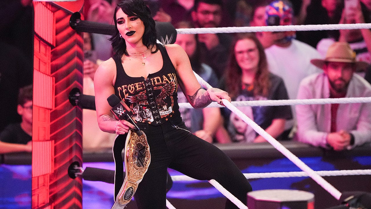 Rhea Ripley looks on during WWE Monday Night RAW at Toyota Center on March 11, 2024 in Houston. (Alex Bierens de Haan/Getty Images)