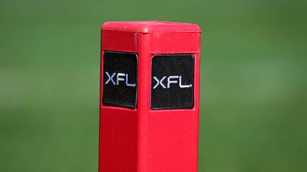 A general view of the XFL logos on an end zone pylon during the first half of the XFL game between the DC Defenders and the St Louis Battlehawks at Audi Field on March 5, 2023 in Washington, D.C. (Scott Taetsch/Getty Images)