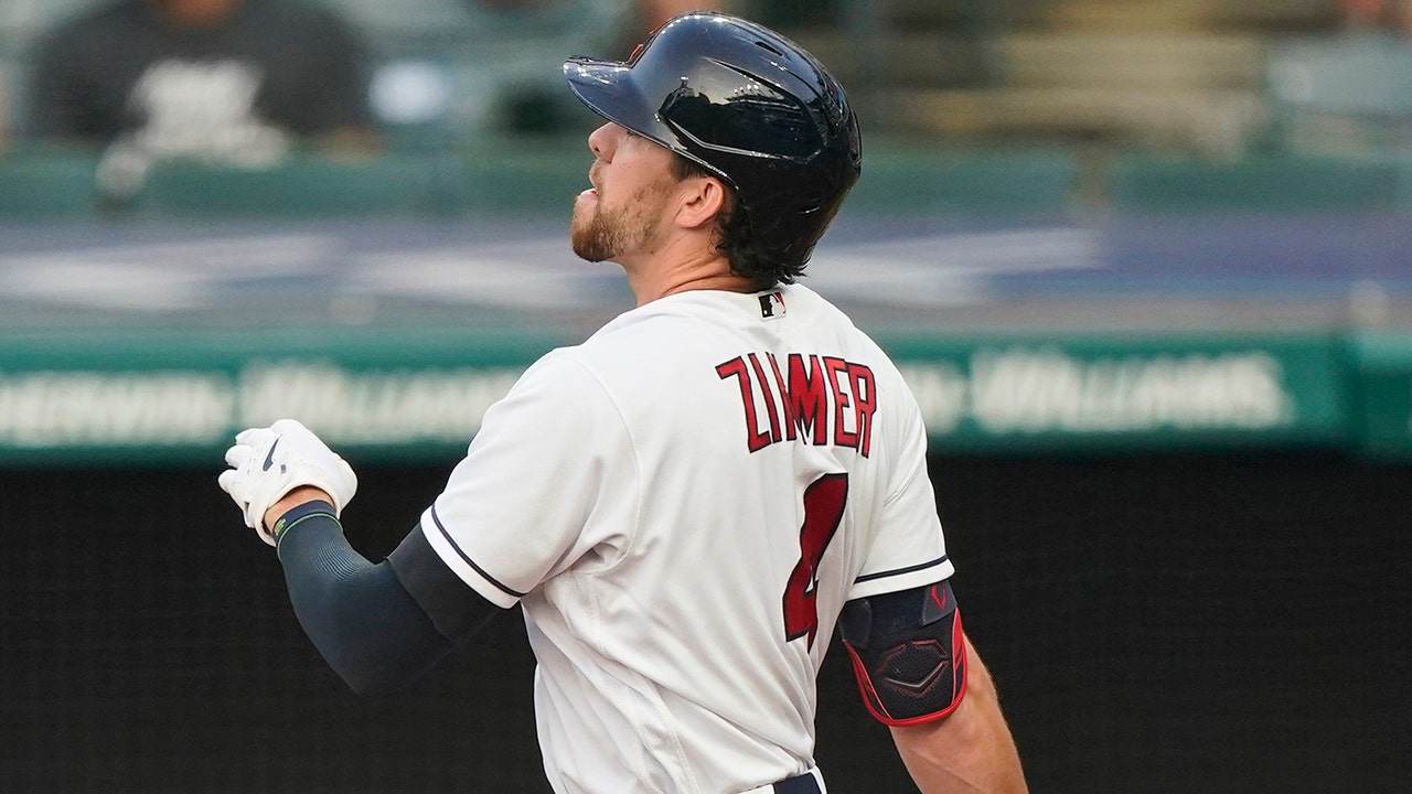 Zimmer’s 465-foot blast off Jordan Lyles (6-11) hooked toward the foul pole and landed several rows back in the second deck at Progressive Field before bounding into the lower deck.