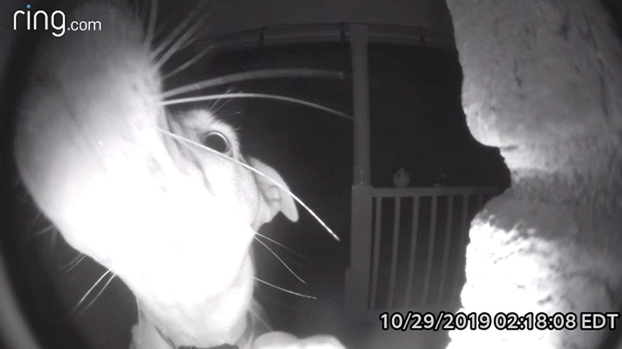 Chika, who lives in McDonough, Ga., was seen on the couple's Ring home video camera hopping on her hind legs to tap the buzzer. She was not successful the first time, but got the buzzer to ring on her second attempt.