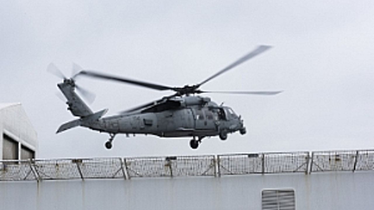 An MH-60S Seahawk assigned to the "Night Dippers" of Helicopter Sea Squadron (HSC) 5, brings supplies to the Military Sealift Command hospital ship USNS Comfort. (U.S. Navy photo by Mass Communication Specialist 2nd Class Adelola Tinubu/Released)