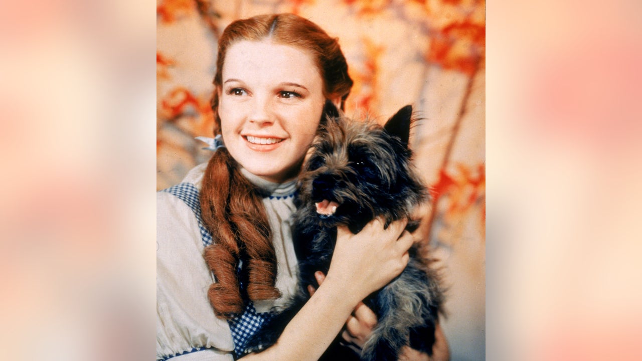 1939: American actor Judy Garland as Dorothy Gale, holding Toto the dog for the film, 'The Wizard Of Oz,' directed by Victor Fleming. ((Photo by MGM Studios/MGM Studios/Getty Images))