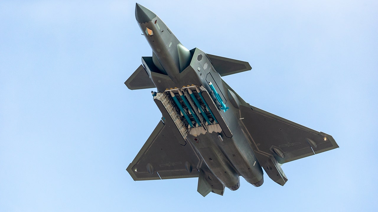Fighter aircraft J-20 of People's Liberation Army Air Force (PLAAF) performs in the sky showing with live ammunition for the first time on day six of the Airshow China 2018 on November 11, 2018 in Zhuhai, Guangdong Province of China. (Photo by VCG/VCG via Getty Images)