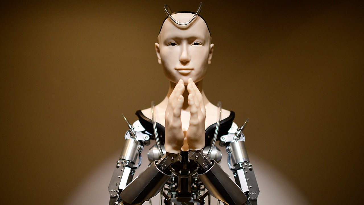 The Kodaji Temple, in a partnership with the robotics team at Osaka University, unveiled "Mindar" earlier this year. The robot is a 6-foot tall android, made of silicon and aluminum and modeled after Kannon, the Buddhist deity of mercy who preaches what is called the "Heart Sutra" in Japanese, with English and Chinese translations projected on a screen for tourists.