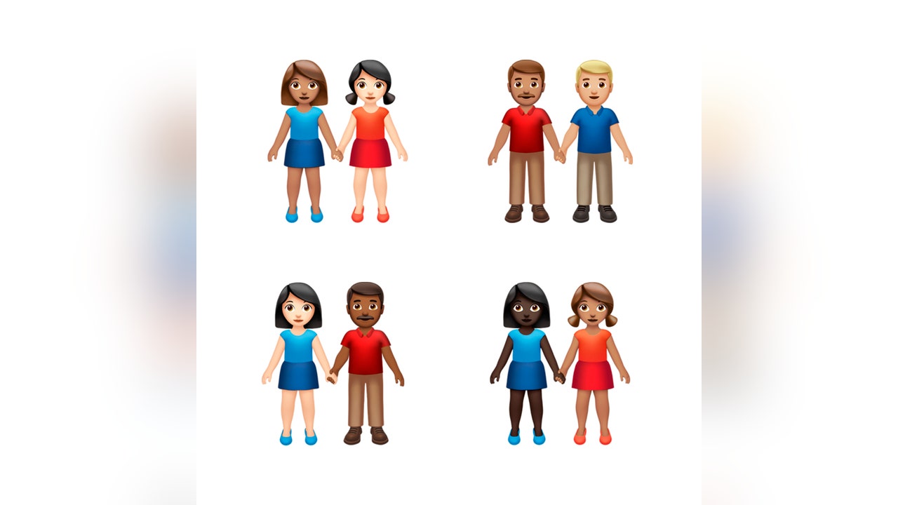 In addition to the holding hands emoji, Cupertino, Calif.-based Apple is also adding a sloth, the flamingo, the skunk, the orangutan, as well as a new yawning emoji.
